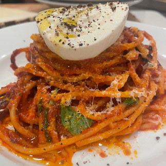 Serve your Spaghetti all'assassina on individual plates or a large platter. Top it off with a generous sprinkle of grated Pecorino or Parmesan cheese. To elevate it even more I added a slice of fresh buratta- the regional cheese of Puglia!